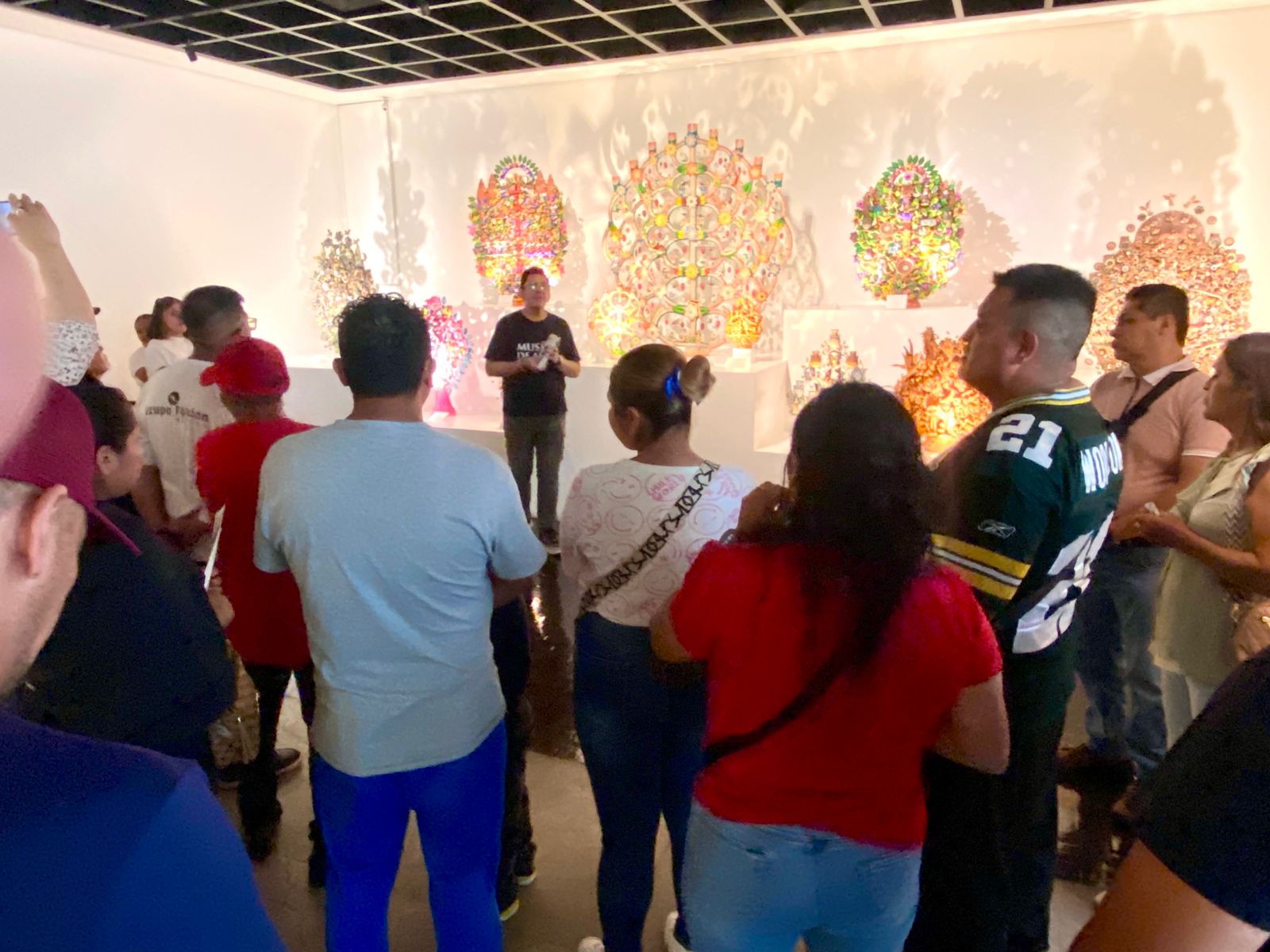 Entre las obras más representativas que pudieron apreciar se encuentran alebrijes de gran formato, árboles de la vida, textiles artesanales, cerámica esmaltada, arte huichol, máscaras festivas, juguetes tradicionales, así como piezas de cartonería y metalistería originarias de diversas regiones del país